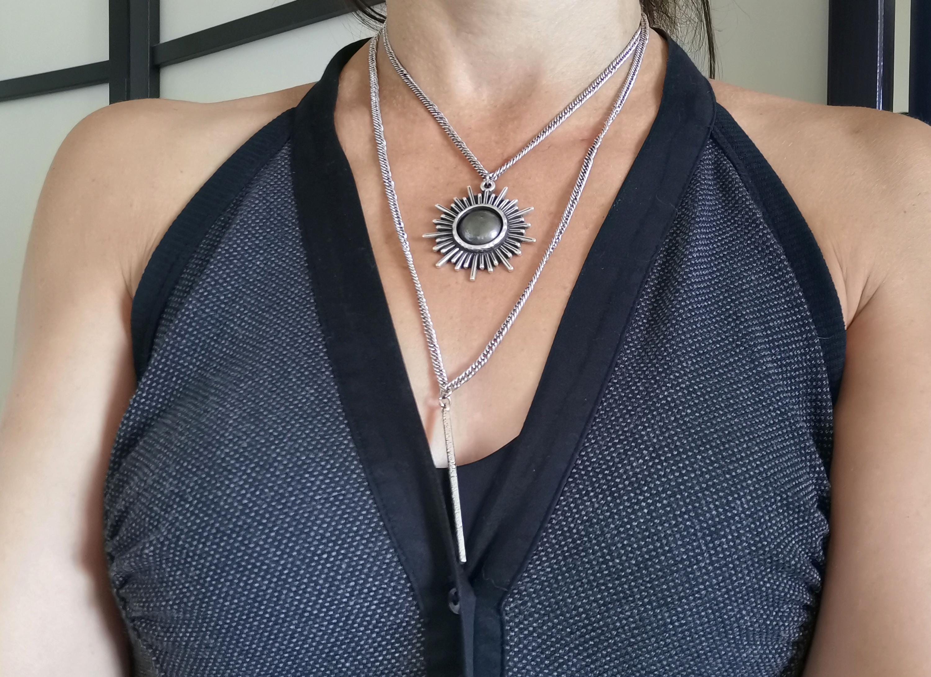This necklace is also available in a bronze/hematite version for a warmer, more mineral effect.