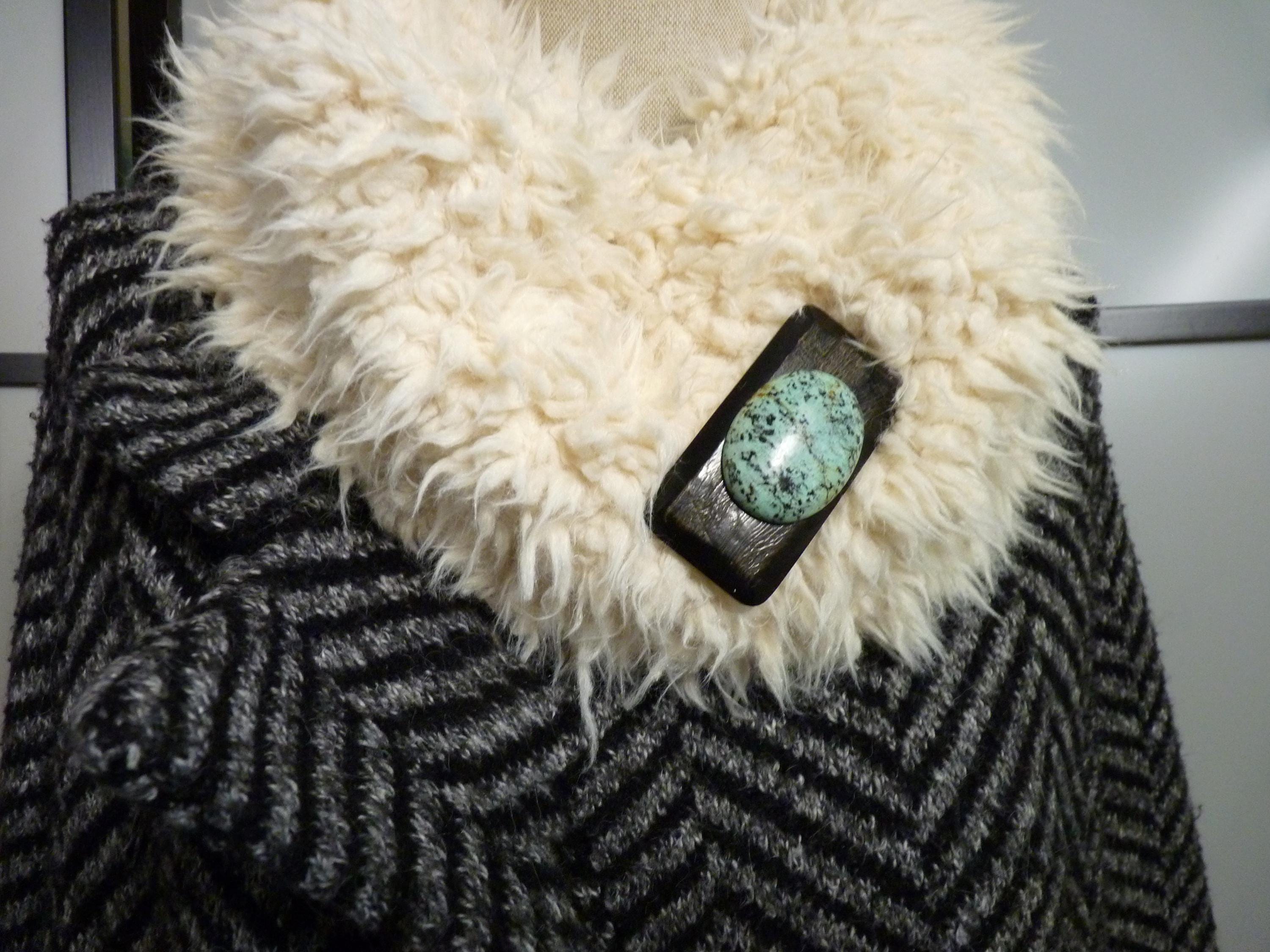 This magnetic brooch is ideal for fastening a thick vest, stole, or coat.