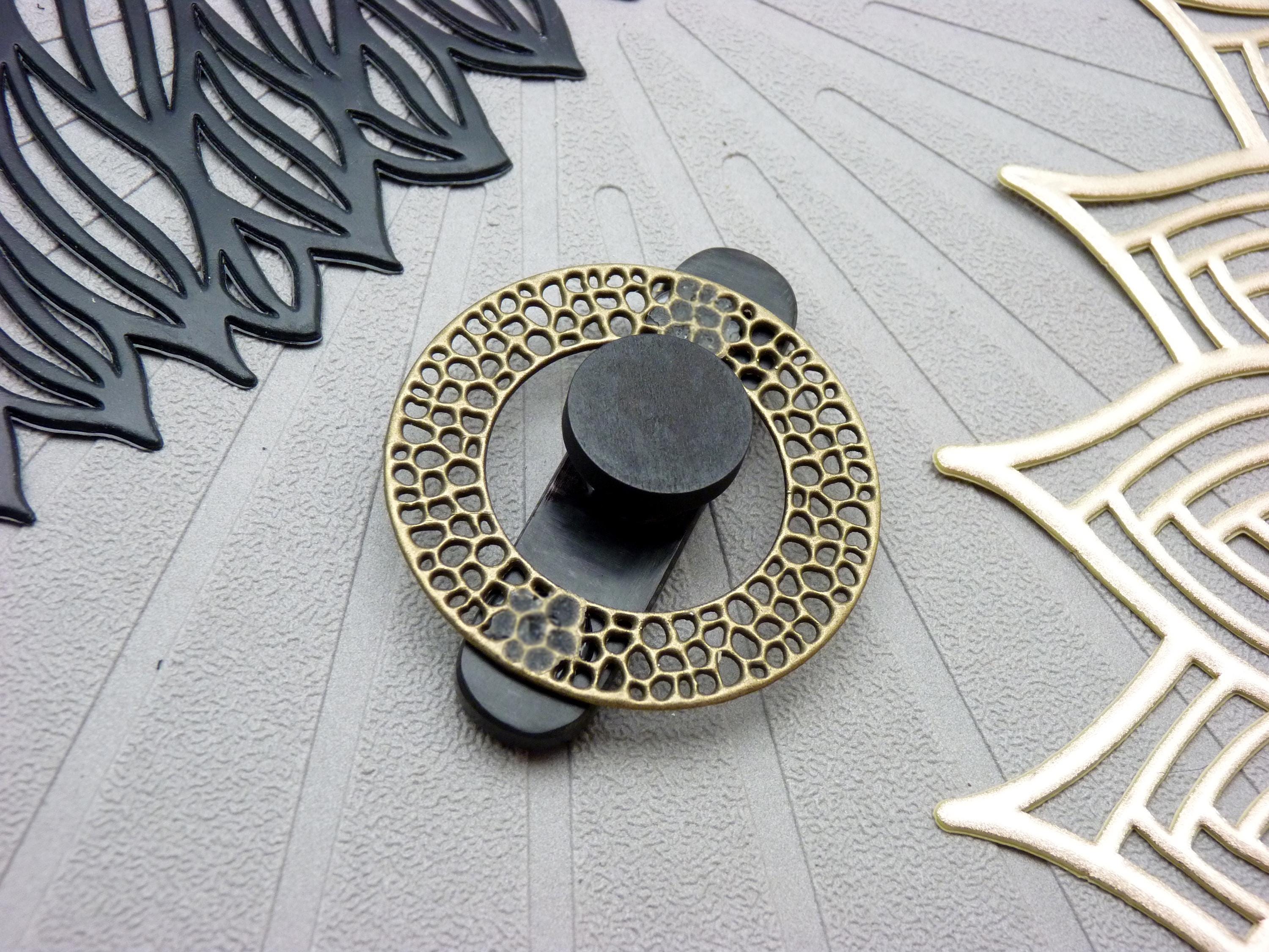 Its graphic design combines the warmth of an openwork bronze ring with the intensity of a genuine black horn bar, engraved with textured patterns.