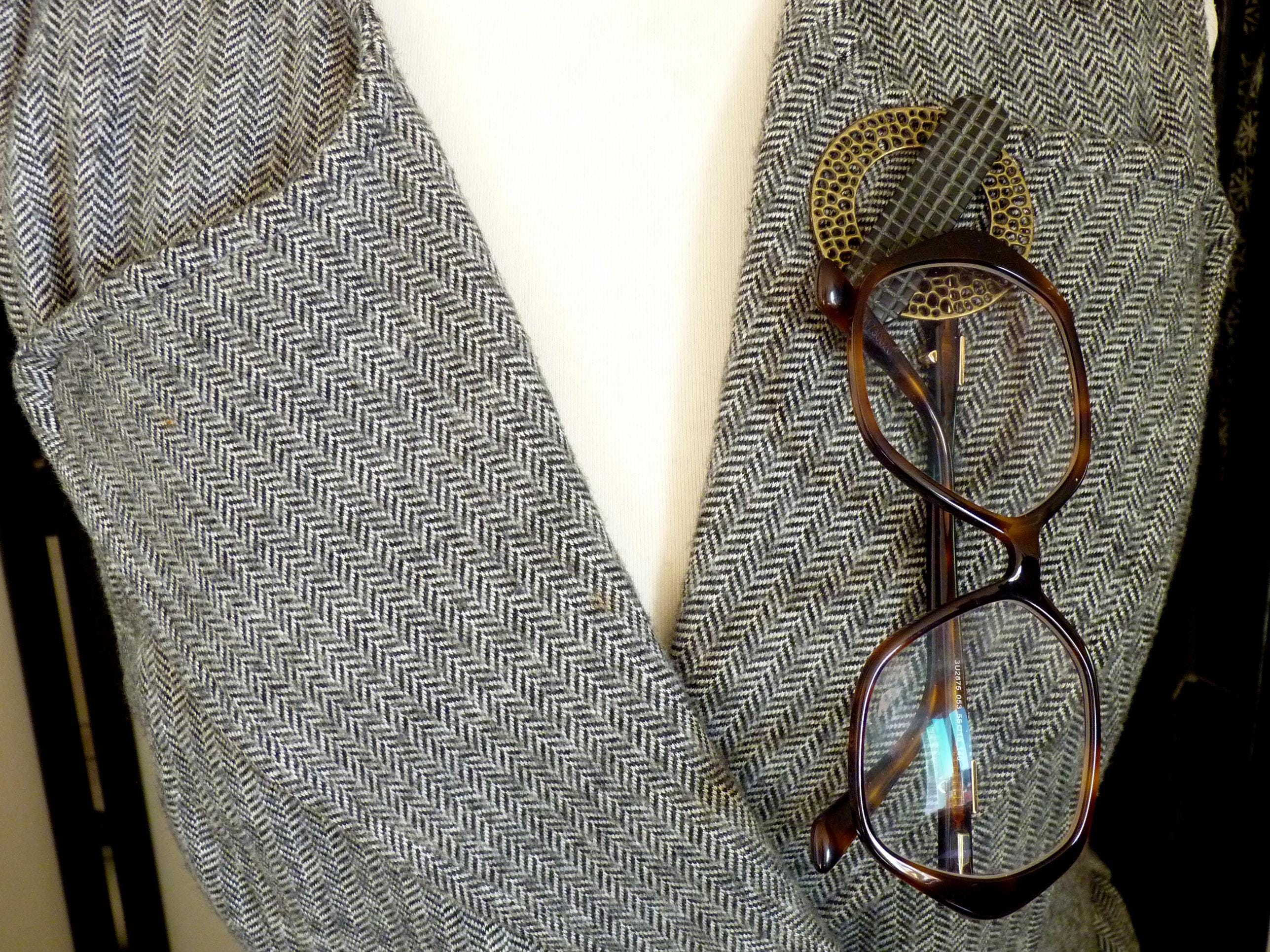 But its real mission is to keep your glasses within easy reach! Thanks to its magnet, it attaches to your jacket or blouse without making a hole. Just slip one arm of your glasses in, and there you go!