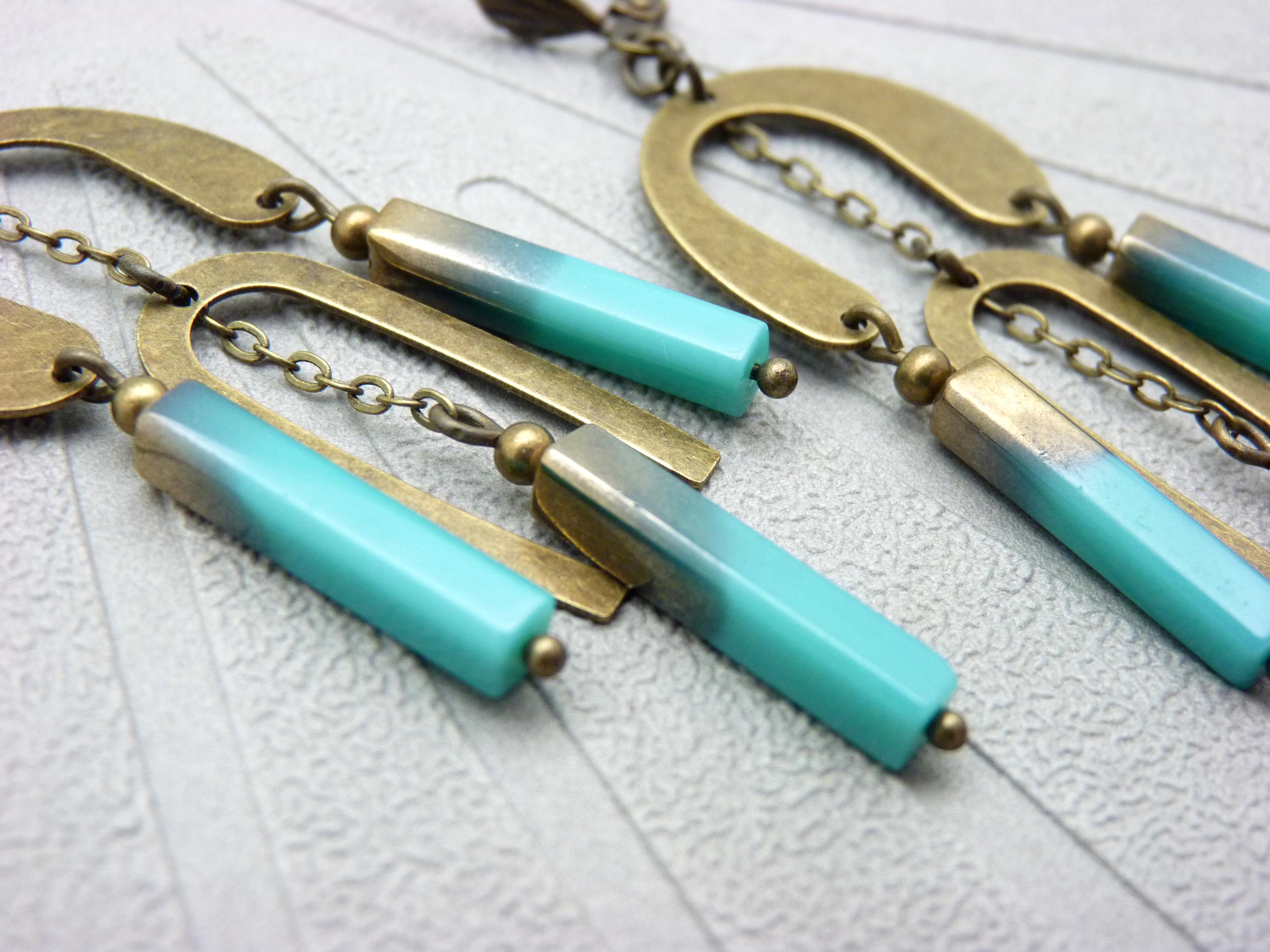 From there, a shower of two-tone glass rods, in luminous turquoise blue and bronze gold, illuminates the jewel with grace.